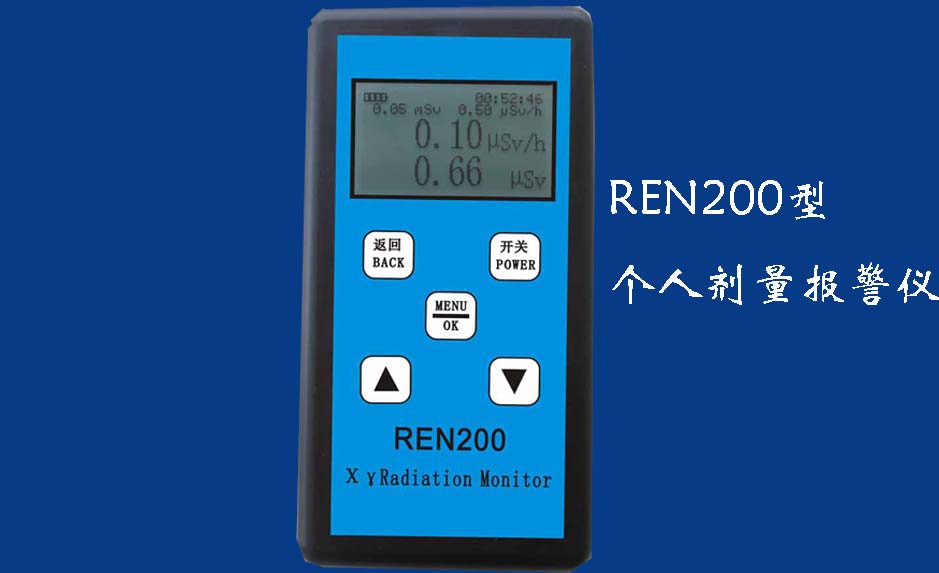 REN200A 個人輻射報警儀REN200A型X、γ輻射個人劑量當(dāng)量HP(10)監(jiān)測儀(簡稱:個人劑量報警儀)內(nèi)置高靈敏度蓋格計數(shù)管為探測器,主要用來監(jiān)測各種放射性工作場所的X、γ以及硬β射線的輻射,具有響應(yīng)快,測量范圍寬的特點。能顯示工作場所的劑量當(dāng)量率和累積劑量,更換電池時,日期及累積數(shù)據(jù)能永久保存。可選配RenRiPersonal個人劑量管理軟件,該軟件可存儲多個人的歷史數(shù)據(jù),能記錄日累積、月累積、年累積、輻照時長、計算平均劑量率、扣除或不扣除本底輻射,且以文字和圖譜的方式展現(xiàn)數(shù)據(jù)。廣泛應(yīng)用于核電站、加速器、鋼鐵、化工、同位素應(yīng)用、工業(yè)X、γ無損探傷、放射醫(yī)療、鈷源治療、γ輻照、放射性實驗室、核設(shè)施周圍環(huán)境監(jiān)測等領(lǐng)域中的工作人員進行個人安全防護監(jiān)測及放射性提示。&nb